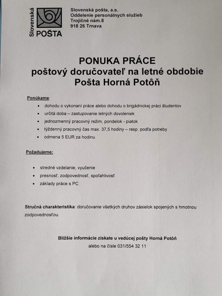Hladá sa poštový doručovateľ na letné obdobie